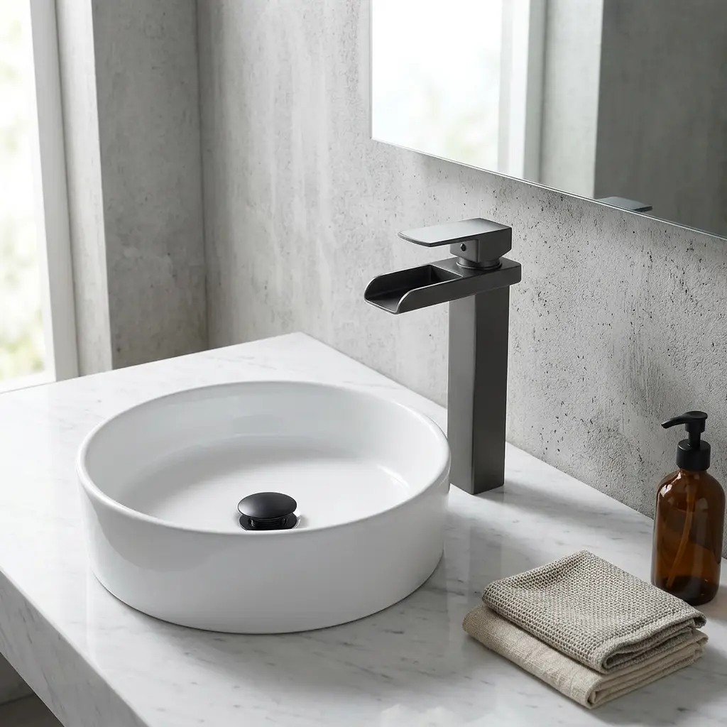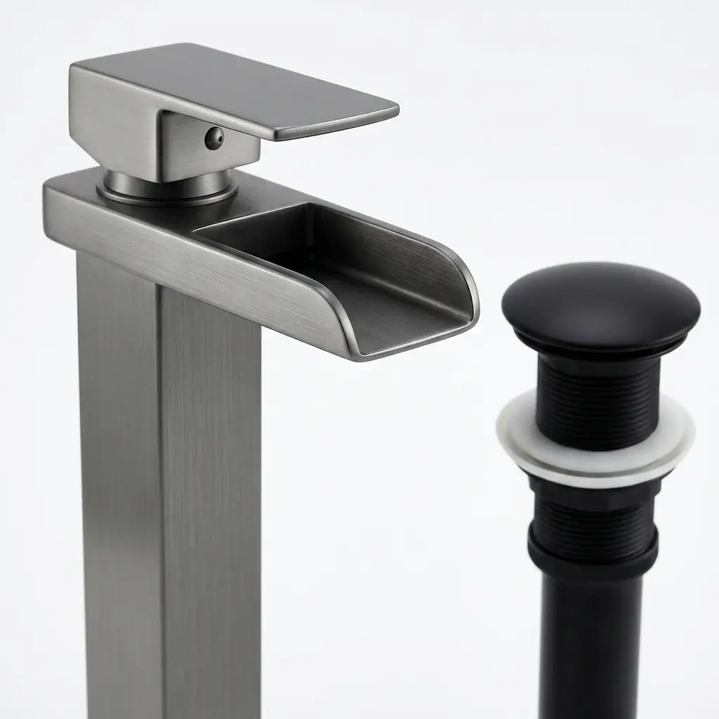 El combo de grifería monocontrol cascada gris con push negro mate es ideal para quienes buscan renovar su baño con un estilo moderno y diferenciador. Su diseño tipo cascada brinda una salida de agua elegante y relajante, mientras que el acabado gris aporta una estética contemporánea y sofisticada.