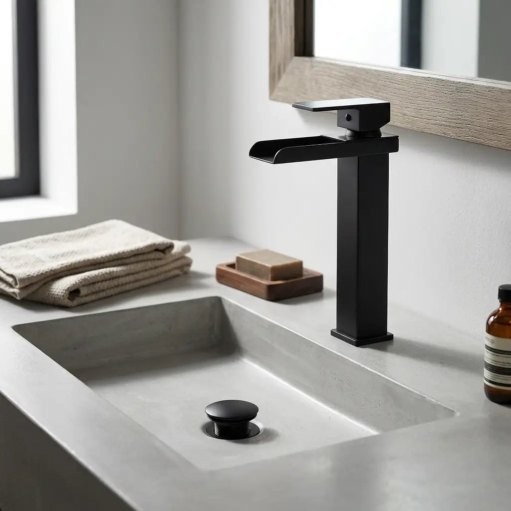 El combo de grifería monocontrol cascada negro mate con push negro mate es la opción ideal para baños modernos que buscan diseño exclusivo y alto impacto visual. Su acabado negro mate aporta elegancia contemporánea, mientras que la salida tipo cascada brinda una experiencia diferente y sofisticada al usar el agua.
