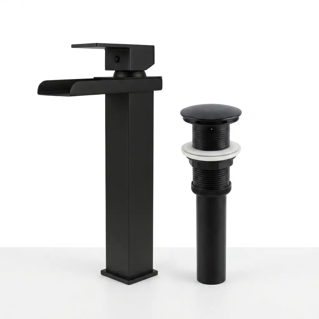 Moderniza tu baño con este combo de grifería cascada negro mate y push negro mate. Diseño elegante, salida tipo cascada y excelente calidad para lavamanos.