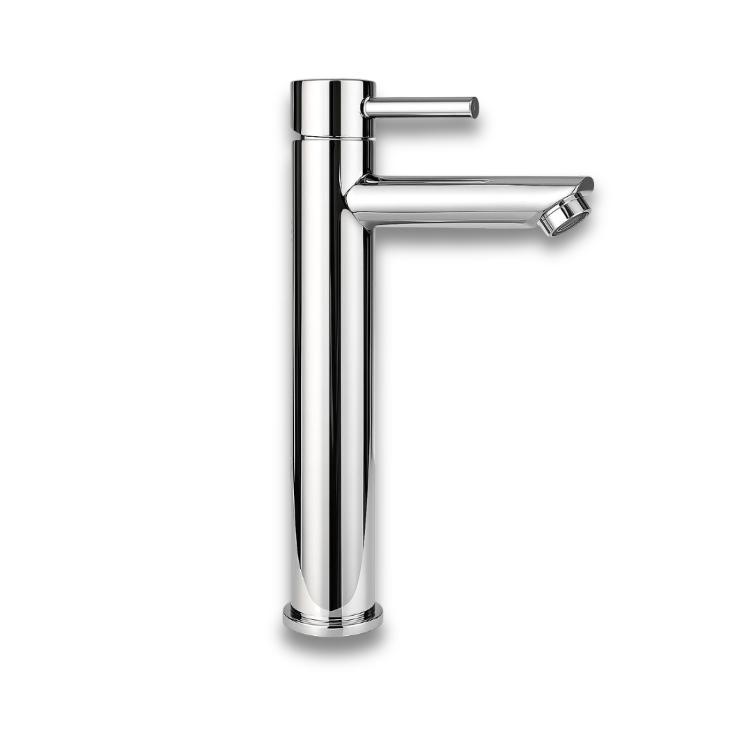 Su diseño monocontrol permite regular el flujo de agua con un solo movimiento, ofreciendo comodidad y practicidad en el uso diario. Gracias a su altura, se adapta perfectamente a lavamanos de sobreponer, aportando un aspecto armónico y contemporáneo al conjunto.
