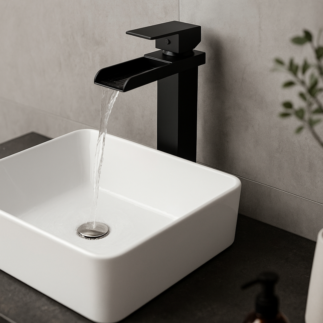 Grifería Cascada Negra Alta | Estilo Contemporáneo y Funcional