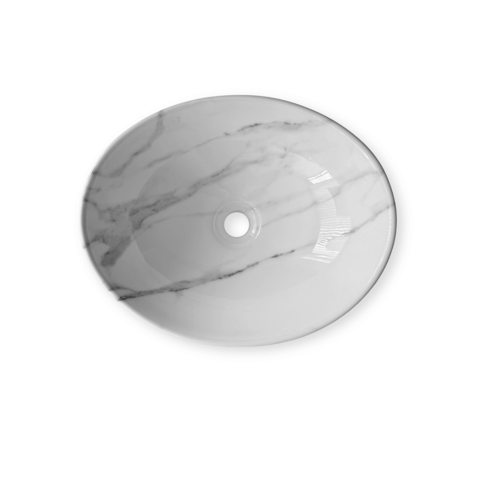 Lavamanos ovalado marmolizado en cerámica combina elegancia, resistencia y un estilo sofisticado. Su acabado marmolizado lo hace único.