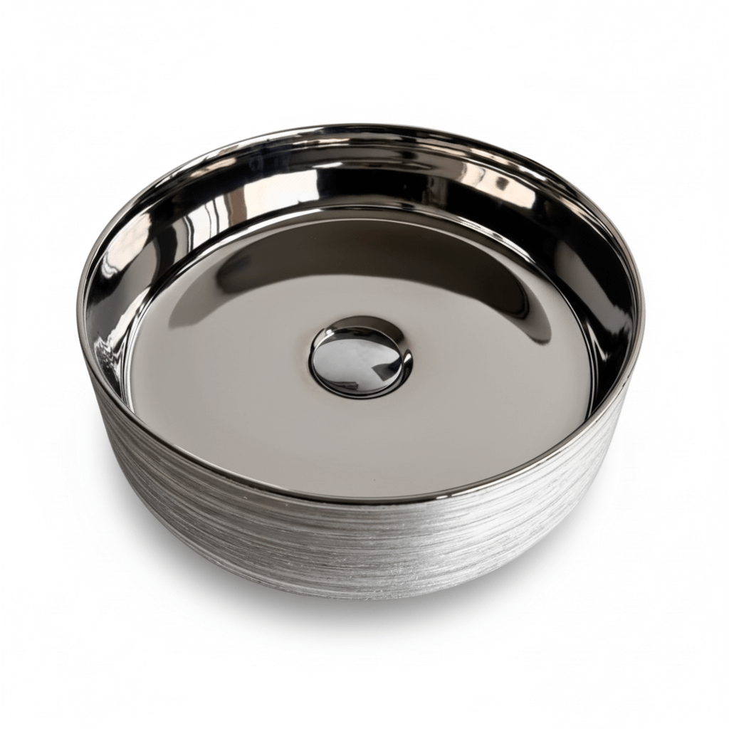 El lavamanos plateado redondo en cerámica es la elección ideal para quienes buscan un diseño exclusivo y lleno de carácter. Con un diámetro de 36 cm y una altura de 11 cm, ofrece un equilibrio perfecto entre estilo y funcionalidad.