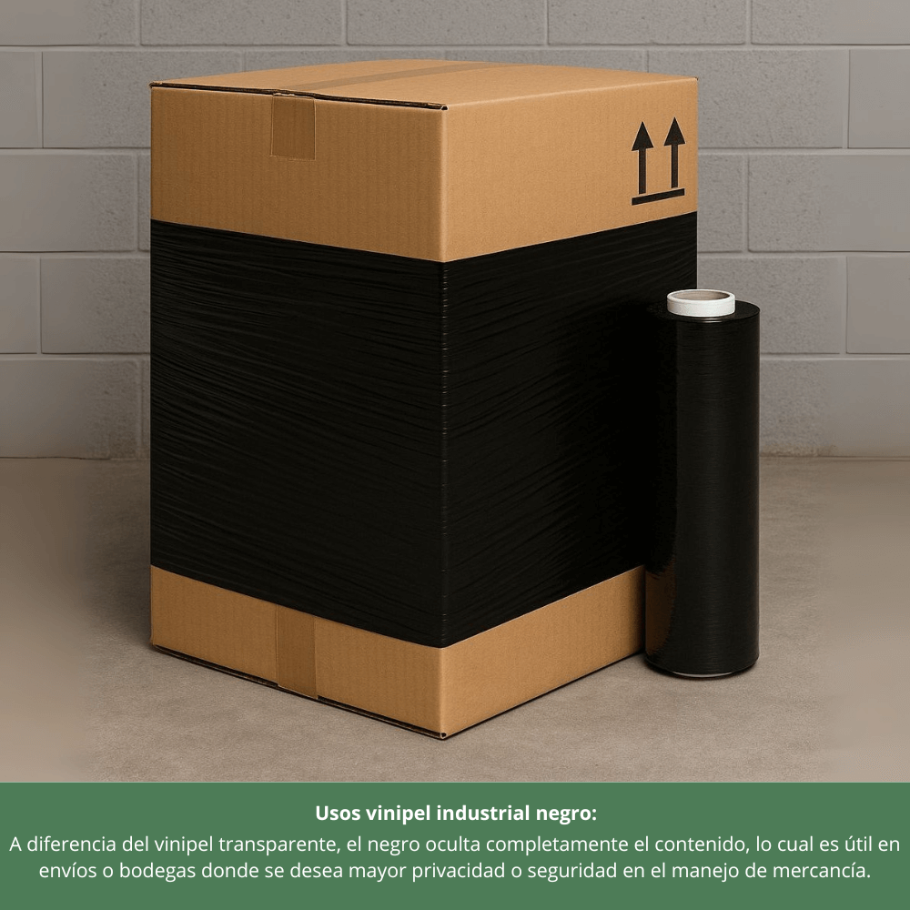 El Vinipel Negro Industrial 25 cm combina resistencia, privacidad y practicidad en cada rollo. Diseñado para uso intensivo, ofrece una capa protectora opaca que resguarda tus productos del polvo, la humedad y los rayos UV.